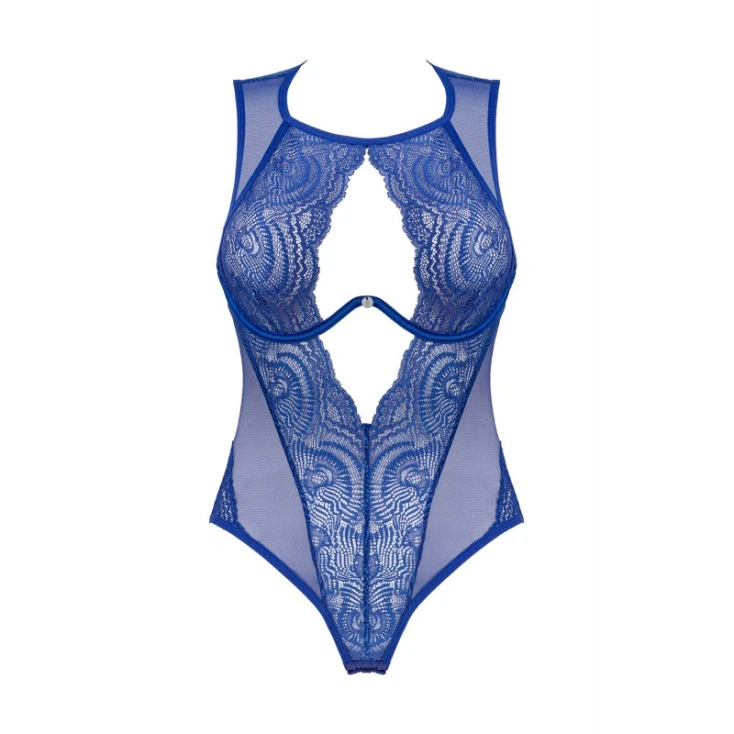 Teinté d’un bleu hypnotique et somptueux, le body à armatures « Giselia » promet une ligne sculpturale dont la beauté sera soulignée par une découpe graphique irrésistible.