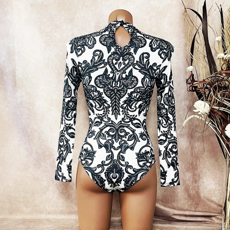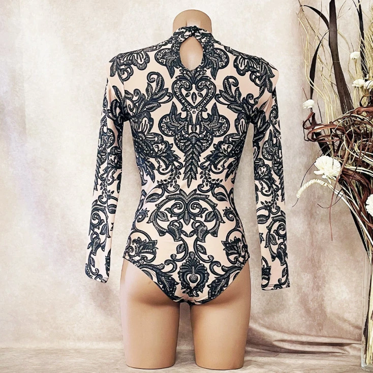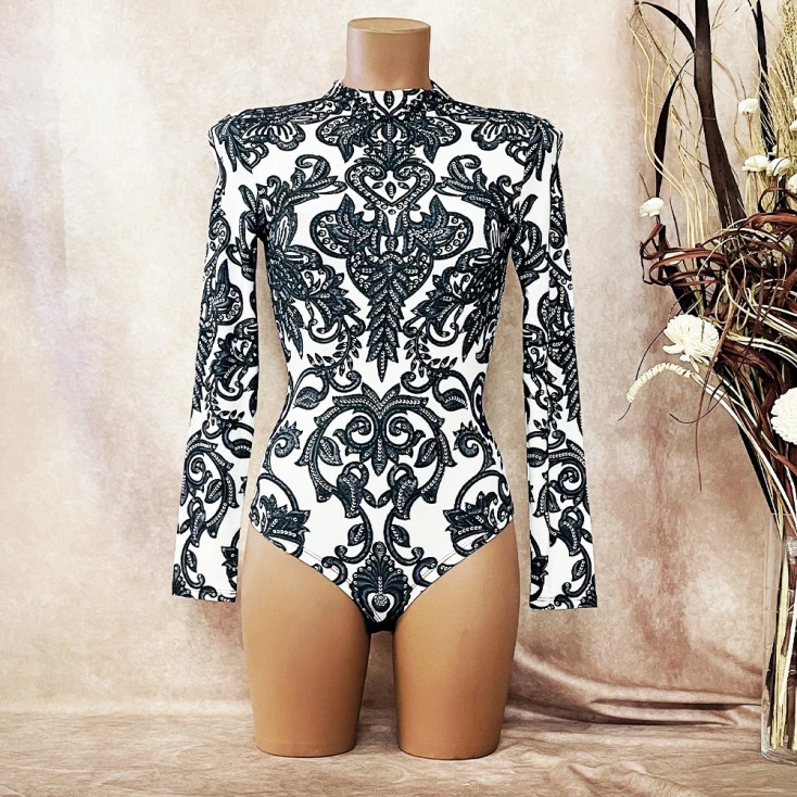 Le body sensuel arbore des imprimés baroques ornés de strass, pour vous couvrir d’élégance.