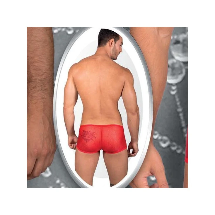 Ce boxer push-up est fabriqué en micro-résille flamboyante et semi-transparente au motif de toile d’araignée.