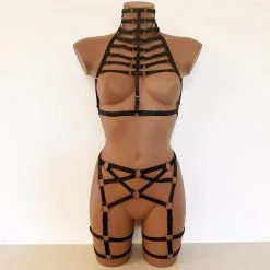 • Inclus : Un top harnais nu, un porte-jarretelles avec jarretières intégrées.