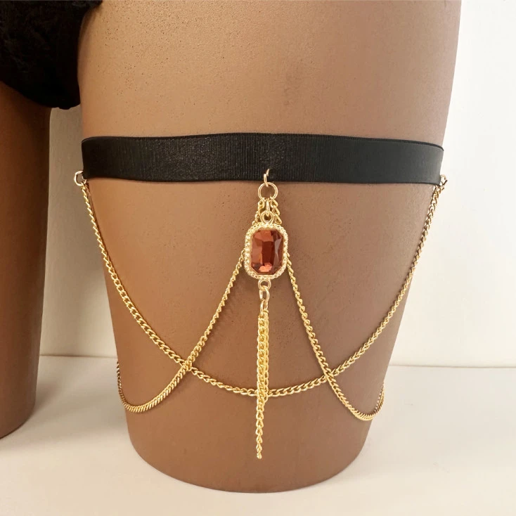 Idéale pour compléter votre ensemble de lingerie féminine préféré ou une tenue audacieuse, cette jarretière bijou ajustable y ajoutera le détail coquin parfait.