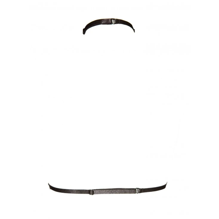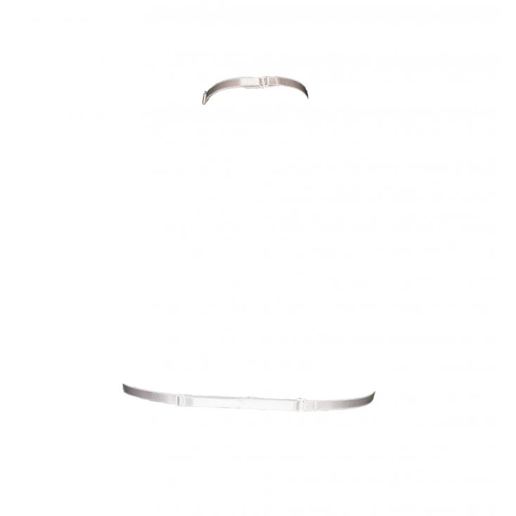 Un lien extensible fin et ajustable marque le creux de la poitrine et dessine une ligne depuis le cou jusqu’au plexus.