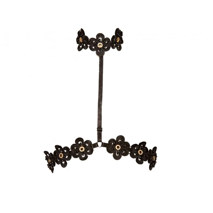 Le harnais à fleurs éveille les sens avec un irrésistible jeu de nudité où la poitrine est sublimée.
