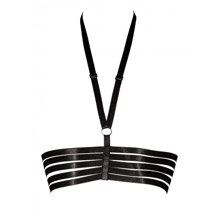 Composé de liens extensibles ajustables, le harnais seins nus couvre votre buste d’inspiration soft-bondage.