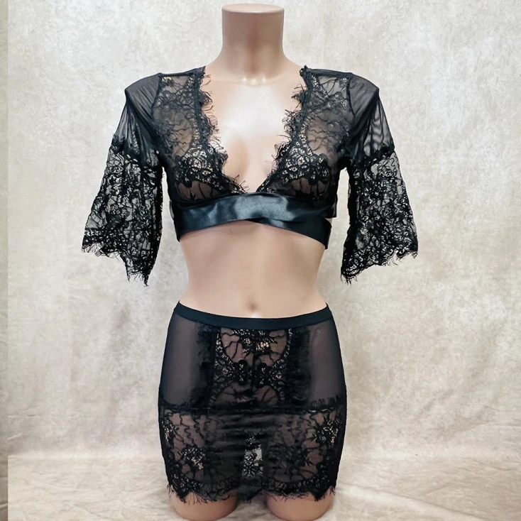 La dentelle à cils finement ajourée laisse apparaitre la peau avec charme.