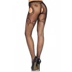 Collant Porte-jarretelles Ouvert Résille Motif Floral – Leg Avenue