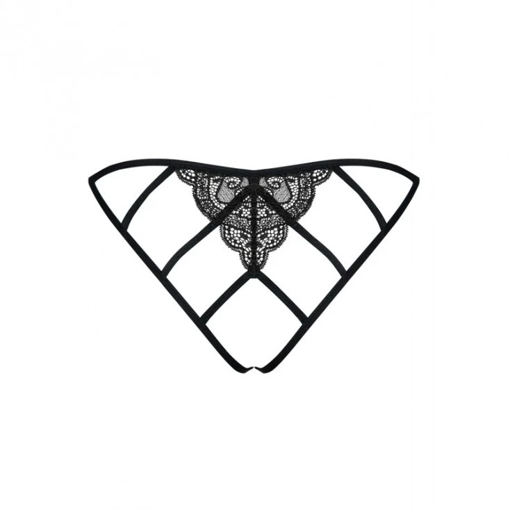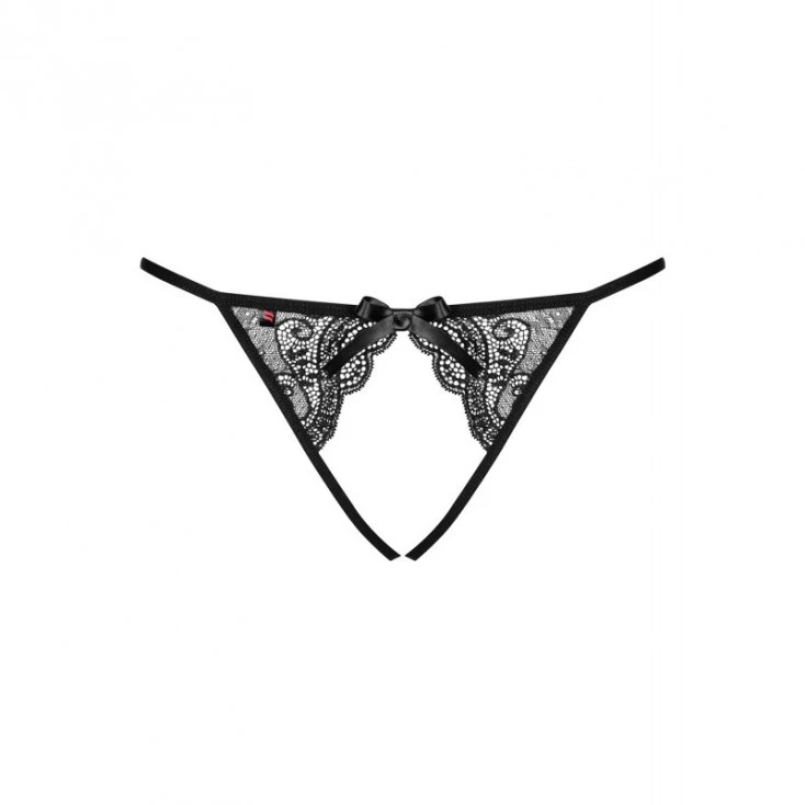 Voici une lingerie sexy pour les plus audacieuses d’entre vous… Obsessive ravit les sens et vous propose une culotte ouverte sur l’avant qui découvre votre intimité sous deux pans de dentelle à la forme d’un rideau, ornés d’un petit noeud.