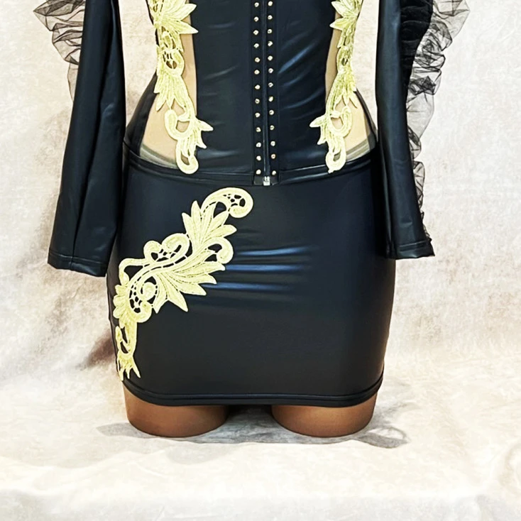 Cette magnifique jupe courte et moulante augmente inéluctablement le potentiel séduction, en ornant les jambes de motifs floraux captivants brodés de fils dorés qui sauront attirer l’attention sur vos atouts.