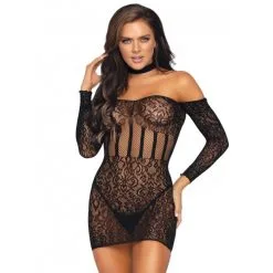Cette robe noire sexy en maille extensible vous est proposée par la marque de lingerie sexy à prix mini Leg Avenue.