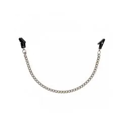 Une petite chaînette en acier maintient les deux pinces qui intensifient votre jouissance d’un plaisir délicieusement teinté de sadomasochisme.