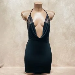 La cambrure du dos se révèle dans son entièreté à l’arrière, aux côtés d’empiècements en dentelle supplémentaires venant s’apposer sur la chute des reins. Pour parfaire cette robe torride, un plissé met audacieusement en relief le courbé des fesses dans un rendu visuel des plus sexy.