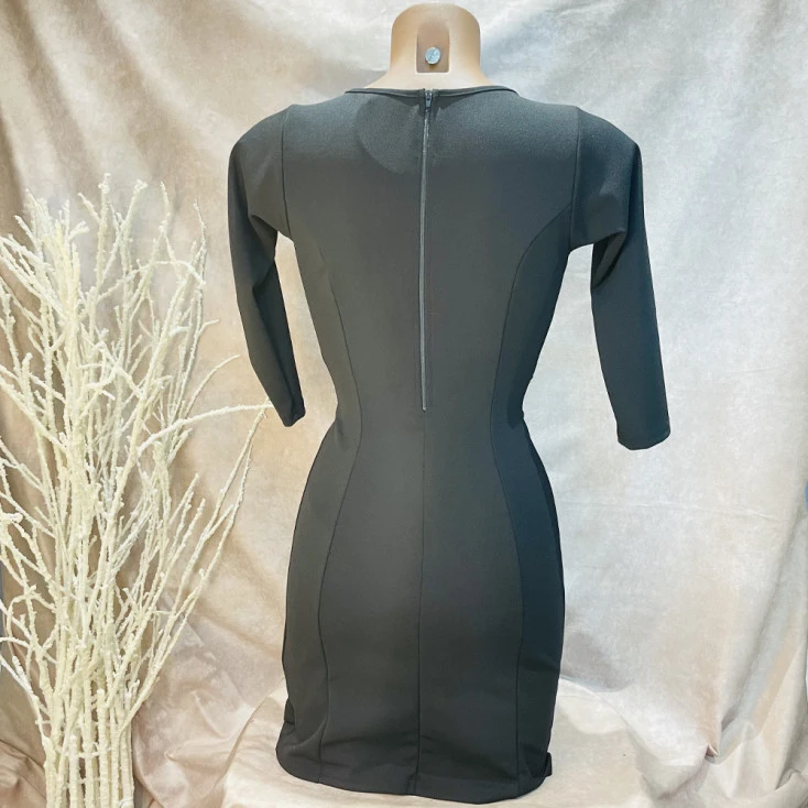 Véritable tenue sexy au service de votre élégance, cette robe de soirée ajustée enserre vos courbes et guide le regard jusqu’à votre poitrine.