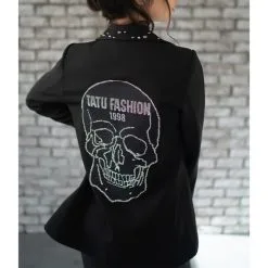 Pour une touche d’éclat attirant tous les regards, des chemins de strass descendent le long du tissu ajouré dans un rendu visuel somptueux.