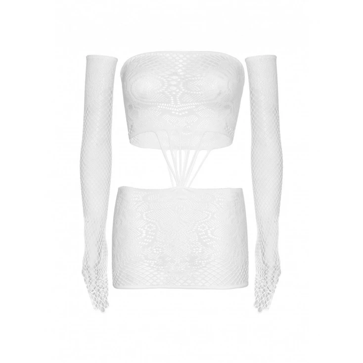 Leg Avenue nous livre ici un modèle aux allures d’un ensemble deux pièces : une mini jupe épousant vos courbes avec charme et un bandeau enveloppant vos seins d’une transparence à la sensualité folle.