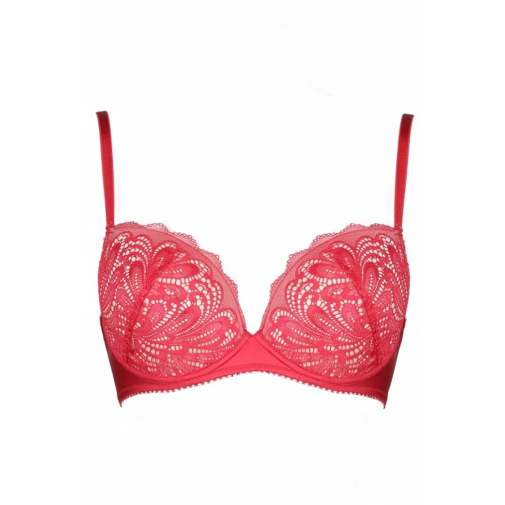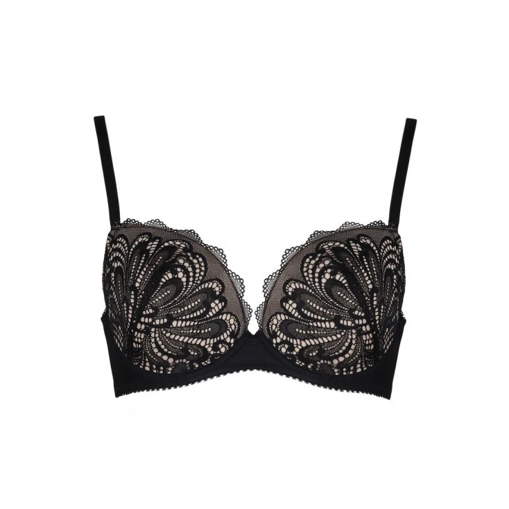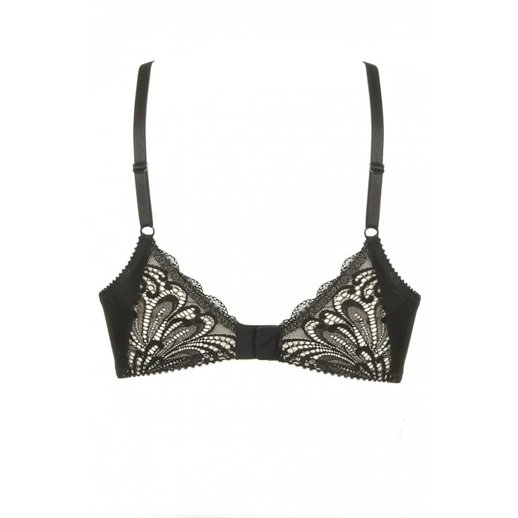 La broderie florale vient redessiner le galbe de votre poitrine tout en sensualité tandis que de la dentelle à croquet suit la courbe de la poitrine et vient embrasser la peau.