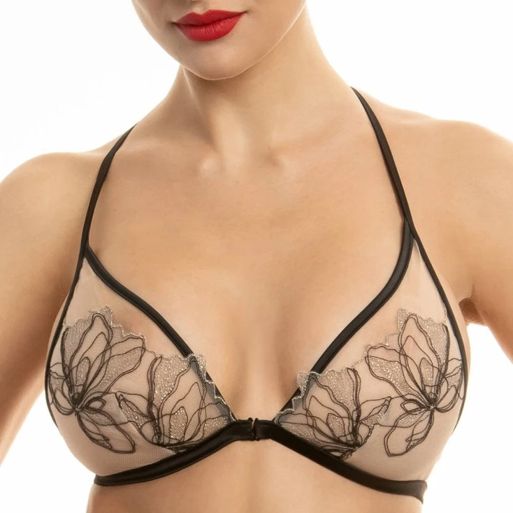 Composés de broderie florale scintillante à l’effet tatoo, les bonnets offrent un décolleté naturel et plongeant pour un effet très séduisant.