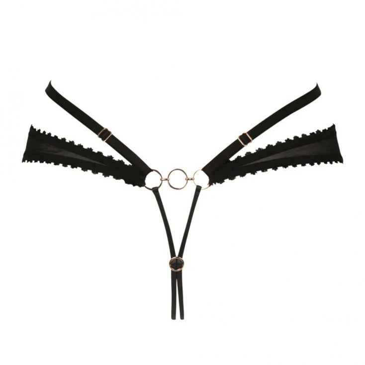 Des liens extensibles habillent vos hanches avec délice tandis que de la broderie florale attire le regard sur votre intimité.