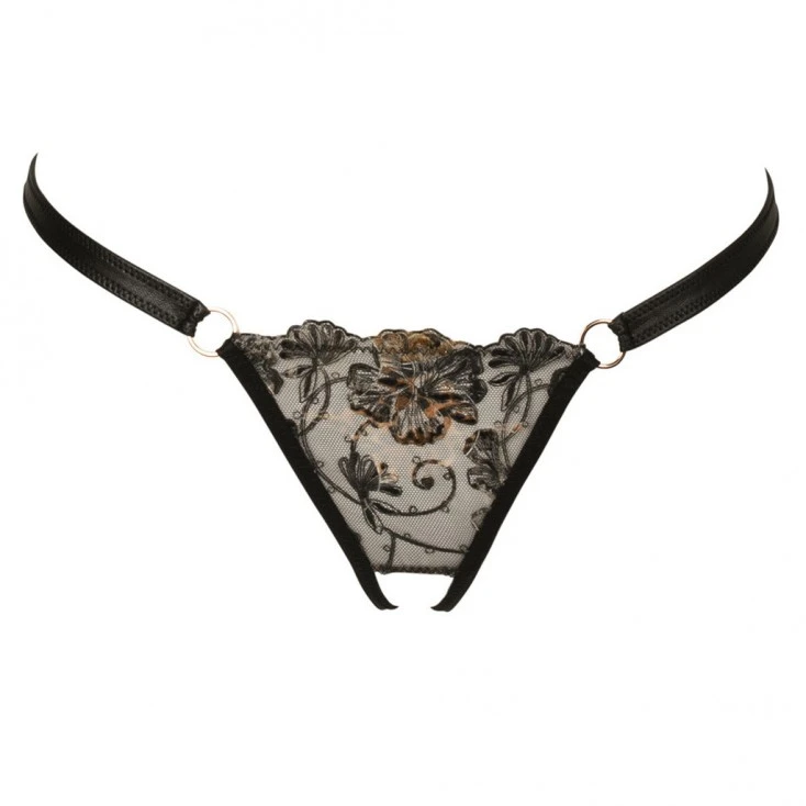 Charlotte Catanzaro vous propose une pièce de lingerie de charme espiègle: un string ouvert afin de compléter la ligne Marta, qui révèle votre intimité grâce à son ouverture audacieuse qui invite aux caresses.